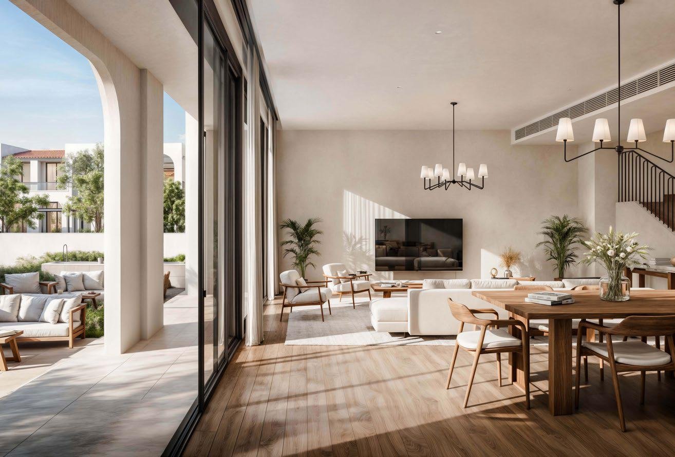 The residences at Nawayef Village are thoughtfully crafted to reflect modern architectural elegance while maximizing comfort for family living. Each unit features sleek lines, expansive floor-to-ceiling windows, and open-plan interiors that invite natural light and airiness. Drawing inspiration from Mediterranean and Tuscan styles, the facades incorporate earth-toned finishes, textured materials, and shaded terraces—creating a warm yet upscale atmosphere. Private gardens, rooftop terraces, and flexible interior layouts make every home ideal for entertaining or relaxed island living.